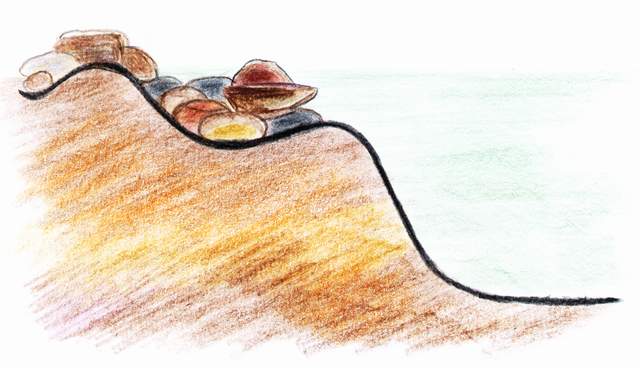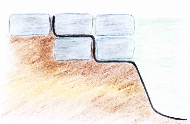 Bord avec passage, 10 cm de béton maigre, plus une couche de pierres concassées.