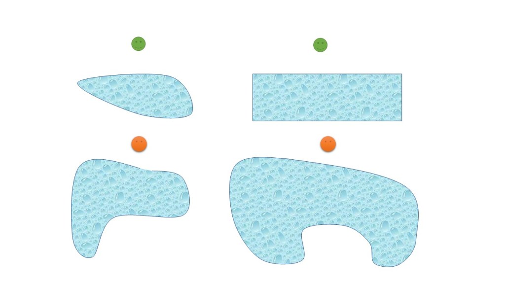Tandis que si vous disposez de beaucoup d’espace et que vous placez un bassin de 2m², celui-ci risque fort de ressembler à un seau d’eau abandonné au milieu d’une grande étendue de verdure !
